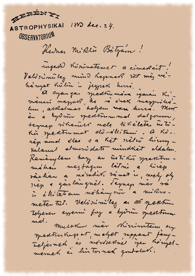 Gothard Jenő levelei Konkoly Thege Miklóshoz - 1883.12.24.